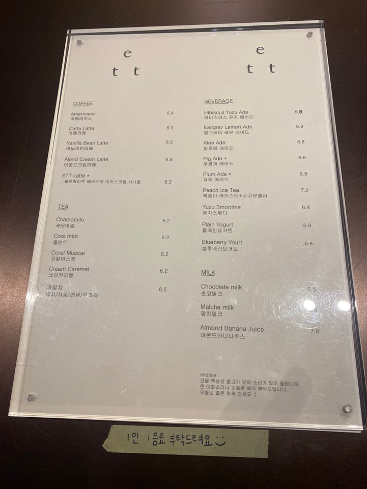 무엇을 먹을까 고민하다가 기본인 아메리카노와 크림카라멜 티를 주문하였다. 티가 생각보다 카라멜 향이 좋아서 맛있게 마셨다.